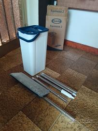 Vendo Mocio Lavapavimenti, ruota a 360°, secchio con doppio scomparto e manico i acciaio inox da 155 cm, due panni. Usato pochissimo. (misure dell' articolo sono riferite alla grandezza della scatola)