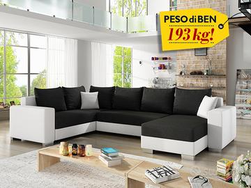 Divano letto matrimoniale angolare Birmingham, con ben 2 box contenitori, puoi sceglierlo tra 10 combinazioni di ecopelle + tessuto, con lo stesso prezzo! Fra i modelli di divano angolare con box a U il divano letto matrimoniale angolare Birmingham è una novità assoluta della nostra collezione. Il divano Birmingham presenta alcuni dettagli estetici semplici, lineari e di grande raffinatezza: i piedi di sostegno dal design elaborato e cuscini lineari ed essenziali. Per questi motivi il divano Birmingham presenta un eccezionale e favoloso rapporto qualità/prezzo. E… ciò nonostante, è disponibile in 11 varianti di combinazione di colore ed ha molteplici funzioni tra cui letto matrimoniale (130×285 cm) e ben 2 box contenitori. Il divano Birmingham è un prodotto di qualità e pesa 193 Kg! Misure: lunghezza 312 cm – altezza 92 cm – profondità 210/150 cm – dimensione letto 130×285 cm SUPERIOR LINE – GARANZIA DI 2 ANNI COME DA NORMATIVA EUROPEA STRUTTURE INTERNE E RIVESTIMENTI MOLTO RESISTENTI PRODOTTO ROBUSTISSIMO E DI ALTA QUALITA’! SCHEDA TECNICA: Struttura divano: legno massello, legno semilavorato e legno artificiale. Cinghie di sostegno in ferro. Seduta: imbottitura in uno strato di schiuma di poliuretano alta resilienza dalla densità di 40 kg/m3. Braccioli e schienale: imbottitura di schiuma di poliuretano dalla densità di 30 kg/m3 Piedi: in plastica Rivestimento in tessuto: 100% poliestere di alta qualità, resistente agli strappi e all’usura Rivestimento in ecopelle: 100% PU ad alta grammatura (425 g/m2), idrorepellente, morbida al tatto e resistente agli strappi e all’usura