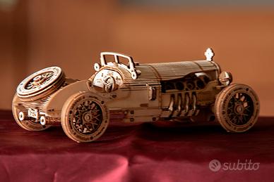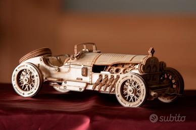Grand Prix Car in legno, modello anno 1910, in 3D, da tavolo, realizzato artigianalmente a mano in compensato naturale, ideale come regalo, non tossico, inodore, sicuro per bambini e adulti.