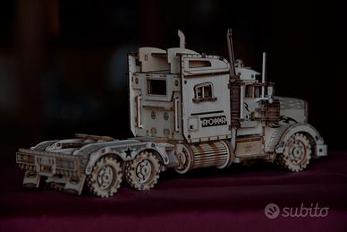 Camion stile americano in legno, in 3D, realizzato artigianalmente a mano in compensato naturale, ideale come regalo, non tossico, inodore, sicuro per bambini e adulti.