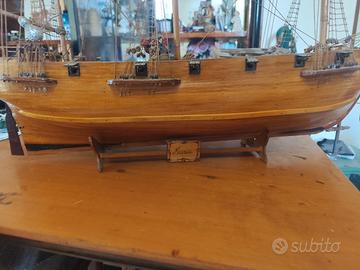 vendo modellino nave in legno a tre alberi britannico...alberi a vele completi di cordame bandiera britannica a pompa... perfette condizioni