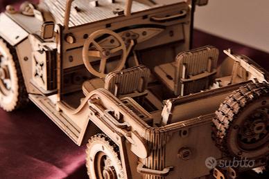 Army Field Car Jeep anni ’40 in legno, da tavolo, in 3D, realizzato artigianalmente a mano in compensato naturale, ideale come regalo, non tossico, inodore, sicuro per bambini e adulti.