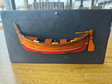 Mezzo i scafo gozzo ligure ) su ardesia realizzato artigianalmente a fasciame di listelli sovrapposti di legno dimensioni 30cm x 18 cm circa disponibili altri colori