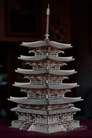 Pagoda a cinque piani in legno, in 3D, realizzata artigianalmente a mano in compensato naturale, ideale come regalo, non tossico, inodore, sicuro per bambini e adulti.