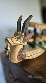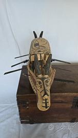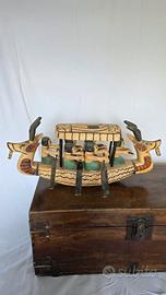 Modello di antica barca funeraria Egizia. Danneggiata in più parti, ma ancora affascinante, perché racconta un periodo. La barca ha misure importanti. Lunghezza cm 75 larghezza con remi cm 47 senza sporgenza dei remi cm 17 altezza cm 26. Materiale leggero e delicato non spedisco. Ritiro a mano.