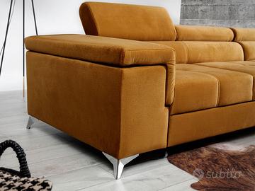 Il divano letto ad angolo in ecopelle o tessuto Bogotá è un bellissimo prodotto con una serie di caratteristiche di design veramente molto fini e ricercate. Come altri divani introdotti di recente, partendo dalla linea e dalla funzionalità del divano Dortmund sono state introdotte delle novità estetiche molto raffinate ed eleganti. A livello qualitativo il divano letto ad angolo in ecopelle o tessuto Bogotá, possiamo sostenere e senza alcun dubbio che è un prodotto di fascia alta. Lo stesso ha in dotazione piedi in metallo, funzione letto con sistema relax, box contenitore di ampie dimensioni e tre poggiatesta reclinabili con movimento fine corsa. La composizione interna del divano angolare ad L funzione letto Bogotá è di livello elevato e dalla base è composta da elementi in metallo sui cui appoggiano due strati di poliuretano espanso di elevata densità. I colori con cui è proposto il divano Bogotá si alternano fra tonalità tenue e tonalità vive ed accese, ed è anche possibile averlo nelle piacevolissime ed attraenti versioni bicolore. Divano angolare robustissimo e di qualità, dal peso di ben 148 Kg! Sottolineiamo che il rivestimento della funzione letto che fuoriesce può essere di colore diverso da quello evidenziato in foto e comunque non è in tinta ed è differente dalla combinazione di colore del divano che si sceglie. Misure: lunghezza 281 cm – altezza 88 cm – profondità 205 cm – dimensione letto 125×210 cm EXCELLENT LINE – GARANZIA DI 2 ANNI COME DA NORMATIVA EUROPEA STRUTTURE INTERNE E RIVESTIMENTI MOLTO RESISTENTI PRODOTTO ROBUSTISSIMO E DI ALTA QUALITA’!