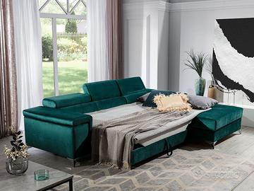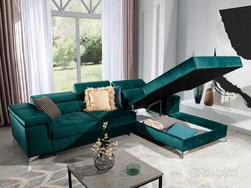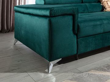 Il divano letto ad angolo in ecopelle o tessuto Bogotá è un bellissimo prodotto con una serie di caratteristiche di design veramente molto fini e ricercate. Come altri divani introdotti di recente, partendo dalla linea e dalla funzionalità del divano Dortmund sono state introdotte delle novità estetiche molto raffinate ed eleganti. A livello qualitativo il divano letto ad angolo in ecopelle o tessuto Bogotá, possiamo sostenere e senza alcun dubbio che è un prodotto di fascia alta. Lo stesso ha in dotazione piedi in metallo, funzione letto con sistema relax, box contenitore di ampie dimensioni e tre poggiatesta reclinabili con movimento fine corsa. La composizione interna del divano angolare ad L funzione letto Bogotá è di livello elevato e dalla base è composta da elementi in metallo sui cui appoggiano due strati di poliuretano espanso di elevata densità. I colori con cui è proposto il divano Bogotá si alternano fra tonalità tenue e tonalità vive ed accese, ed è anche possibile averlo nelle piacevolissime ed attraenti versioni bicolore. Divano angolare robustissimo e di qualità, dal peso di ben 148 Kg! Sottolineiamo che il rivestimento della funzione letto che fuoriesce può essere di colore diverso da quello evidenziato in foto e comunque non è in tinta ed è differente dalla combinazione di colore del divano che si sceglie. Misure: lunghezza 281 cm – altezza 88 cm – profondità 205 cm – dimensione letto 125×210 cm EXCELLENT LINE – GARANZIA DI 2 ANNI COME DA NORMATIVA EUROPEA STRUTTURE INTERNE E RIVESTIMENTI MOLTO RESISTENTI PRODOTTO ROBUSTISSIMO E DI ALTA QUALITA’!