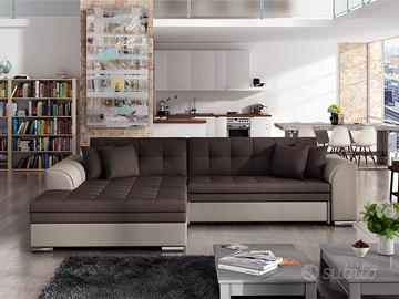 Un modello interessantissimo della nuova collezione è anche il divano angolare in tessuto Brema. Riprendendo una linea, che seppure non identica, è abbastanza simile a quella di altri modelli proposti, il divano letto matrimoniale angolare Brema ha alcune caratteristiche che lo specificano e lo identificano particolarmente: tra queste senza dubbio vi è il fatto di avere un rapporto tra le proporzioni della lunghezza e della profondità della penisola ben equilibrato, tanto da far sì che quest’ultima non risulti essere eccessivamente lunga rispetto alla lunghezza del divano; pur non essendo però molto lunga, la penisola è invece decisamente ampia in larghezza, per un maggiore relax della persona. Brema è dotato di 4 cuscini di decoro compresi nel prezzo. Anche se non è dotato di box contenitore, il divano Brema ha invece una praticissima e funzionalissima funzione letto con sistema relax. Divano robusto e di grande qualità dal peso di 173 Kg. Sottolineiamo che il rivestimento della funzione letto che fuoriesce può essere di colore diverso da quello evidenziato in foto e comunque non è in tinta ed è differente dalla combinazione di colore del divano che si sceglie. Guarda anche le altre versioni del modello Brema: Perù, Miami e Groenlandia! Misure: lunghezza 295 cm – altezza 80 cm – profondità 195 cm – dimensione letto 126×210 cm SUPERIOR LINE – GARANZIA DI 2 ANNI COME DA NORMATIVA EUROPEA STRUTTURE INTERNE E RIVESTIMENTI MOLTO RESISTENTI PRODOTTO ROBUSTISSIMO E DI ALTA QUALITA’! SCHEDA TECNICA: Struttura divano: legno massello, legno semilavorato e legno artificiale. Cinghie di sostegno in ferro. Seduta: imbottitura in uno strato di schiuma di poliuretano alta resilienza dalla densità di 40 kg/m3. Braccioli e schienale: imbottitura di schiuma di poliuretano dalla densità di 30 kg/m3 Piedi: in plastica Rivestimento in tessuto: 100% poliestere di alta qualità, resistente agli strappi e all’usura