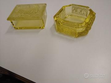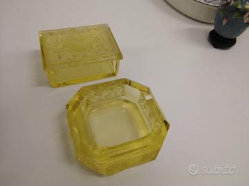 Scatola e porta cenere simil lalique,in cristallo giallo