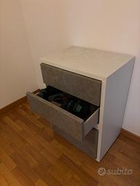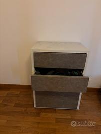 Moderna cassettiera doppia laminato bianco e grigio nuvolato con apertura push pull 4 cassetti - dim. larghezza 62-altezza 86- profondità 43