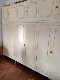 .Modernariato Armadio metá secolo scorso. Struttura robusta, necessità restauro sulla facciata, mancano alcuni pezzi di finiture oro. Restaura bile in casa con un po di pazienza. misure: altezza 245 cm, largo 296 cm, profondo 60 cm.