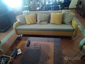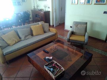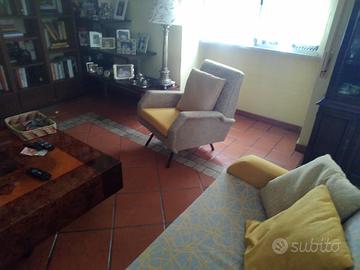 Meraviglioso salotto anni 60 appena restaurato e rinfoderato Divano 3 posti, 2 poltroncine, poltrona reclinabile 10 cuscini coordinati in piuma Prezzo trattabile