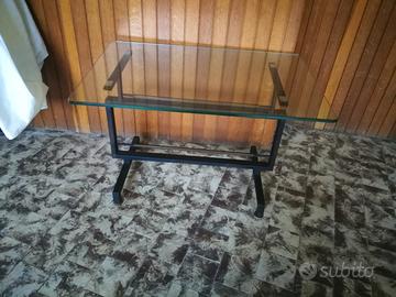 Modernariato anni '60. tavolino in ferro nero con ripiano in cristallo