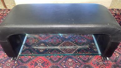 Splendido tavolino in pelle nera e acciaio e cristallo. Volendo é abbinabile con analogo divano