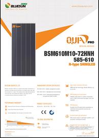 Per errato acquisto vendo 10 moduli fotovoltaici monocrostallino da 610 watt cad.uno a € 610,00 I moduli sono nuovi e imballati . Ritiro a mano .