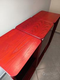 Vendo meraviglioso lotto di quattro moduli della serie Samara per Maisa. Disegnati negli anni 70 dal designer e architetto olandese Derk Jan De Vries. Iconici ed inimitabili complementi d arredo in legno di frassino, componibili secondo i propri gusti. Si tratta di due moduli 38 x 76 con ripiano in vetro fumé, un modulo 38 x 38 "a giorno" ed un modulo 38 x 38 con tre cassetti. Nella rara ORIGINALE tinta, si presentano in eccellenti condizioni. Posso inviare altre foto se seriamente interessati. Prezzo ragionevolmente trattabile. Spedisco se necessario su pedana dedicata e tracciabile a prezzo da concordare. Cassina knoll alivar Gavina Mim USM Haller credenza sideboard madia cassettiera Dassi ico Parisi Afra e Tobia Scarpa Joe Colombo design scandinavo italiano mid century epoca vintage modernariato antiquariato