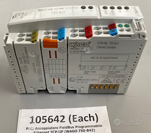 Modulo WAGO 750-461/000-007 – Ingresso analogico 2 canali per potenziometri. Caratteristiche principali: 2 canali analogici Compatibile con potenziometri Montaggio su sistema WAGO I/O Condizione: Nuovo Prezzo:79 € pezzi disponibili: 3 Modulo WAGO 750-467 – Ingresso analogico 2 canali 0…10 V per PLC WAGO 750-467, ideale per sistemi PLC con ingressi analogici. Caratteristiche principali: 2 canali analogici Range di tensione: 0…10 V Condizione: Nuovo Prezzo:110€ Modulo di ingresso digitale WAGO 750-402, ideale per sistemi PLC. (foto 4) Caratteristiche principali: 4 canali di ingresso digitale Tensione: 24 VDC Tempo di risposta: 3 ms Compatibile con serie WAGO-I/O-SYSTEM 750 Condizioni: Nuovo Prezzo: 10€ Disp: 10 ea. WAGO 750-461/000-009 per sistemi PLC. (foto 5) Caratteristiche principali: 2 ingressi analogici per sonde di temperatura Ni1000 Curva DIN EN 46760 Compatibile con serie WAGO-I/O-SYSTEM 750 Condizioni: nuovo Prezzo: 79 € WAGO 750-550 per sistemi PLC. Caratteristiche principali: 2 uscite analogiche Range: ±10 V DC Compatibile con WAGO-I/O-SYSTEM 750 Condizioni: nuovo Prezzo: 79€ pezzi disponibili: 3 Accoppiatore Fieldbus WAGO 750-842 per sistemi PLC. (foto 6) Caratteristiche principali: Programmabile, Comunicazione Ethernet TCP/IP Compatibile con WAGO-I/O-SYSTEM 750 prezzo: 129€ Disp: 2ea Accoppiatore FieldBus WAGO 750-842 Programmabile Ethernet TCP/IP, compatibile con moduli serie 750. Ideale per automazione industriale. Stato: nuovo Prezzo: 39€ Spedizione disponibile a carico dell'acquirente o ritiro a mano. E' possibile ritirare il materiale, previo appuntamento, a due passi dall'uscita 10 del GRA, vicino all' IKEA, dal lunedì al venerdì 8-11.30 e 13-16.30. Per qualsiasi domanda potete contattarci negli orari riportati sopra. Ns riferimento: req 262710-10 ; 262713-10 ; 262709-10; 262712-10; 262715-10; 262716-10; 262716-10; 262717-10 B1-FL-2B