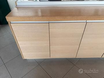 Modulo completo Valcucine modello Ricicla in legno multistrato ignifugo e resistente all'acqua.Puo' essere ritirato anche smontato in Aprile 2026. misure Lunghezza 354 cm Altezza 90 cm profondità 35 cm . Interni con ripiani in multistarto bianchi e angolo finale a giorno. Antine in multistrato Valcucine.