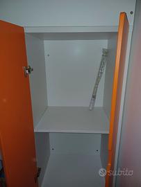 Modulo letto soppalco con annessa la scrivania, libreria e dietro un piccolo armadio.