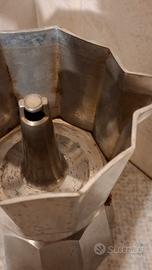 Moka per caffè 6 tazze, dotata di manico e pomello termoresistente per un uso sicuro senza scottarsi, ottime condizioni generali.