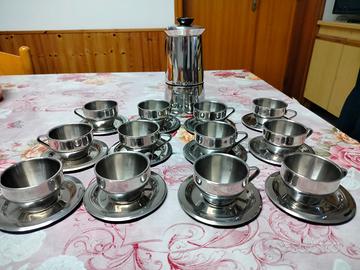 Un salto nei gloriosi anni 80 Vintage Servizio in acciaio inox 18/8 cook-o-matic Composto da: 1x Moka 12x Tazzina e piattino