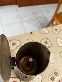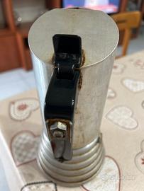 Bellissima caffettiera moka vintage modello "Kontessa", prodotta in Italia dalla storica azienda Vev Viganò (marchio originale punzonato sul fondo, come da foto). Un pezzo iconico del design anni '80, caratterizzato dalla base conica a gradini. Perfetta per collezionisti o per chi ama dare un tocco retrò alla propria cucina senza rinunciare alla qualità del caffè italiano. • Marca: Vev Viganò • Materiale: Alluminio (corpo) e bachelite (manico e pomolo) • Capacità: Grande, circa 6-8 tazze.