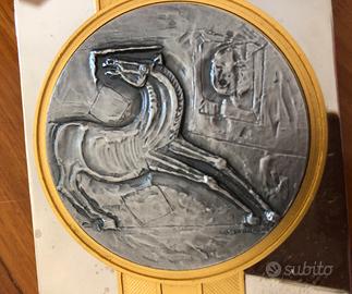 Fermacarte realizzato in bassorilievo bronzo argentato dal modello originale di Bruno Cassinari per la Galleria San Carlo.