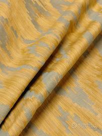 Raro tessuto jacquard firmato Molteni, autentico esempio di design tessile italiano degli anni ’80. Presenta un motivo astratto geometrico nei toni del giallo oro e grigio perla, con una luminosità calda e sofisticata che esalta la tridimensionalità della trama. Il tessuto è corposo e resistente (circa 800 g/m), ideale per foderare divani, poltrone, sedie, cuscini, mantovane e copriletti, ma anche per creare pannelli decorativi o tendaggi eleganti. Una stoffa d’autore, perfetta per chi ama il fascino del vintage italiano senza tempo. Dettagli tecnici: Produttore: Molteni Epoca: anni ’80 Misura: cm 605 x 280 Peso: circa 800 g/m Composizione: misto cotone e poliestere Texture: Jacquard geometrico astratto Colore: Giallo oro verde e grigio perla Un tessuto da collezione che racconta la storia del design d’interni italiano, dove eleganza e robustezza si fondono in un unico, inconfondibile stile. Epoca 1900-2000 Materiale Cotone, Poliestere Produttore / Marchio Molteni Heritage – La Luce del Design Anni ’80 Paese d’origine Italia Lunghezza 605 cm Larghezza 280 cm Condizione Come nuovo - mai usata Periodo stimato 1980-1990