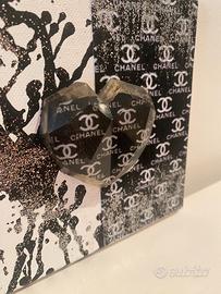Dipinto scultura Acrilico su tela - Cuore in resina epossidica trasparente - Logo Chanel - Misure 15x15 - Opera dell’Artista Maru Queen ( Marussa Giovinazzo ) - Artista quotata su Catalogo Arte Moderna CAM ( Mondadori Cairo Editore - Collezione “ Sweet Queen Luxury Collection “ Mon Coeur “ - ( Spedizione In Post )