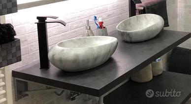 Vendo top bagno con 2 lavandini effetto pietra e 2 rubinetti neri… compreso di sifoni e tubi flessibili e staffe per il montaggio