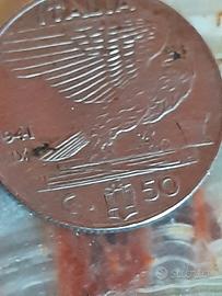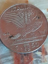 Moneta da 50 centesimi Impero del regno d'Italia coniata nel 1941 durante il periodo Fascista.