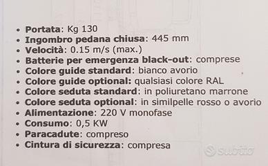 Vendo montascale con poltroncina, marca VIMEC, modello Dolce Vita, acquistato ad aprile 2019 ed utilizzato per pochissimi giorni per motivi di salute. Da considerarsi pari al nuovo.
