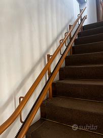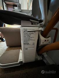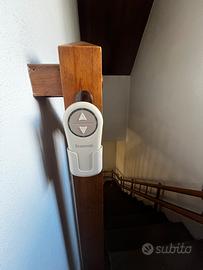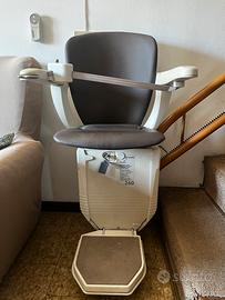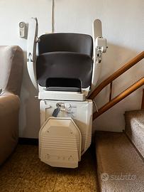 Montascale con sensori di sicurezza con binari a curva (lunghezza 5 metri compresa la curva). Colore del vinile marrone. Vendibile con due telecomandi. Perfettamente funzionante (in quanto usato poco). Prezzo trattabile,se realmente interessati anche disponibili alla prova funzionamento