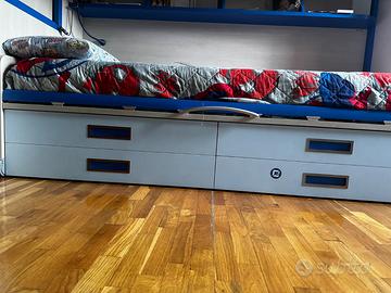 Letto a castello con angolo aperto e finestra. Letto superiore estraibile per facilitare il rifacimento e scala con capienti cassetti. Letto inferiore con 4 comodi e capienti cassetti. Praticamente nuovo. Vendo per trasloco.