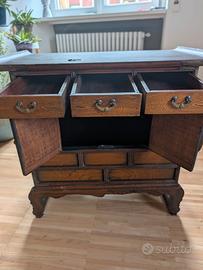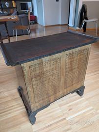 È presente una piccola mancanza di decorazione in legno nella parte inferiore destra (visibile in foto), che non compromette la stabilità o la funzionalità del mobile e può essere restaurata facilmente da un ebanista. Prezzo scontato di 200€ per eventuale restauro.