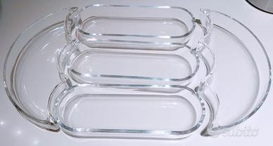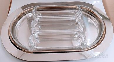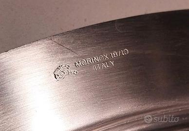 Morinox - set da tavola acciaio inox 18/10 Design Italiano anni '80 - piatto da portata con coperchio (diametro cm 27) - antipastiera con 5 recipienti in vetro (lunghezza cm 41 - larghezza cm 27) - profilo in lamina oro OTTIME CONDIZIONI Intero set = € 40 Antipastiera = € 25 Piatto da portata = € 20
