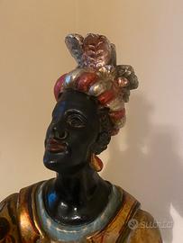 Vendo splendido moro veneziano porta lampada alto 150 cm, base larga 35 cm, pezzo di grande presenza scenica e forte impatto decorativo.