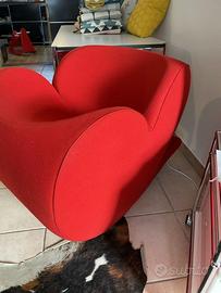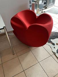 MOROSO, Magnifica e particolare poltrona SOFT HEART, OTTIMO STATO. Manufatto oscillante a dondolo a forma di cuore con imbottitura in poliuretano espanso schiumato a freddo ignifugo firmata dal grande design israeliano Ron Arad per l'azienda di Patrizia Moroso. Soft Heart è una poltrona dal design eclettico e particolare, perfetto per arredare con un tocco pop e contemporaneo qualsiasi ambiente residenziale e commerciale. La struttura interna della poltrona è in acciaio. Il rivestimento, in tessuto o meglio Lana KVDRAT rossa. La poltrona avendo un contrappeso interno e' molto pesante e stabile.