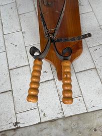 Morsa per affettare il prosciutto a coltello, supporto robusto per affettare a mano prosciutti, leve blocca prosciutto in metallo, base in legno massello di abete.