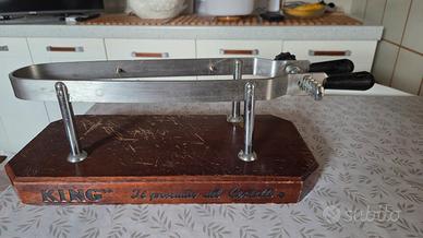 morsa per prosciutto, usata per affettare 5 prosciutti in tutto, poi rimasta in cantina per anni