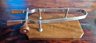 Morsa Professionale per Prosciutto Crudo. Base in pregiato legno massello 45x24. Morsa inox con 3 piedi e manici in legno. Marca BBC made in italy. Altezza totale cm.60x24x16h