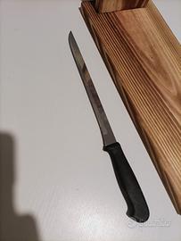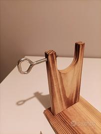 Morsa per prosciutto crudo usata 1 volta,come nuova,lunghezza 40 cm, con coltello apposito per tagliare il prosciutto.Come in foto.