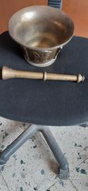 antico mortaio in ottone bronzino alto 11cm largo 19