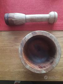 Mortaio e pestello in legno (diametro: 13,5 cm).