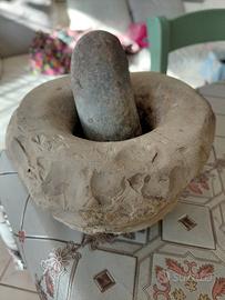 mortaio antichissimo scolpito tutto a mano in pietra pregiata, adatto per tritare in modo naturale tutte le spezie
