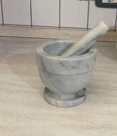 Vendesi mortaio in marmo grigio perla . Diametro 12 cm, altezza 11 cm.