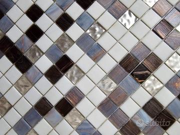Vendo lotto di 8 pannelli quadrati di mosaico, nuovi e pronti per la posa. Le tessere sono montate su una rete flessibile che permette di adattarli facilmente a qualsiasi superficie, anche curva, o di tagliarli con le forbici per creare fasce decorative.