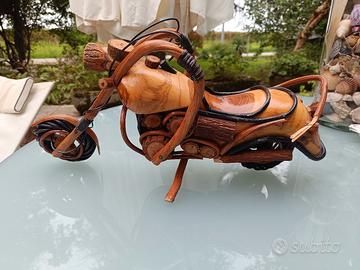 modellino di Harley Davidson vintage realizzato artigianalmente in legno pieno di particolari e dettagli. l oggetto è impeccabile ed è lungo 48 cm: presenta solo un imperfezione che richiede solo di essere incollata, x il resto è perfetta! spedisco