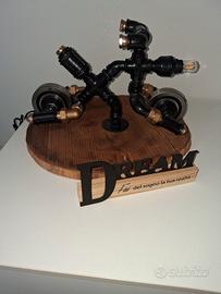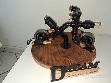 Creazione con tubi idraulici zincati da mezzo pollice. H 26 cm Lunghezza 41cm Larghezza 36cm Lampadina E14 con luce calda