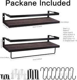 Mensole galleggianti in legno e ferro, perfette per organizzare e decorare cucina, bagno, soggiorno o camera da letto. Salvaspazio e resistenti, ideali per bottiglie di spezie, libri, piante, asciugamani e oggetti decorativi.